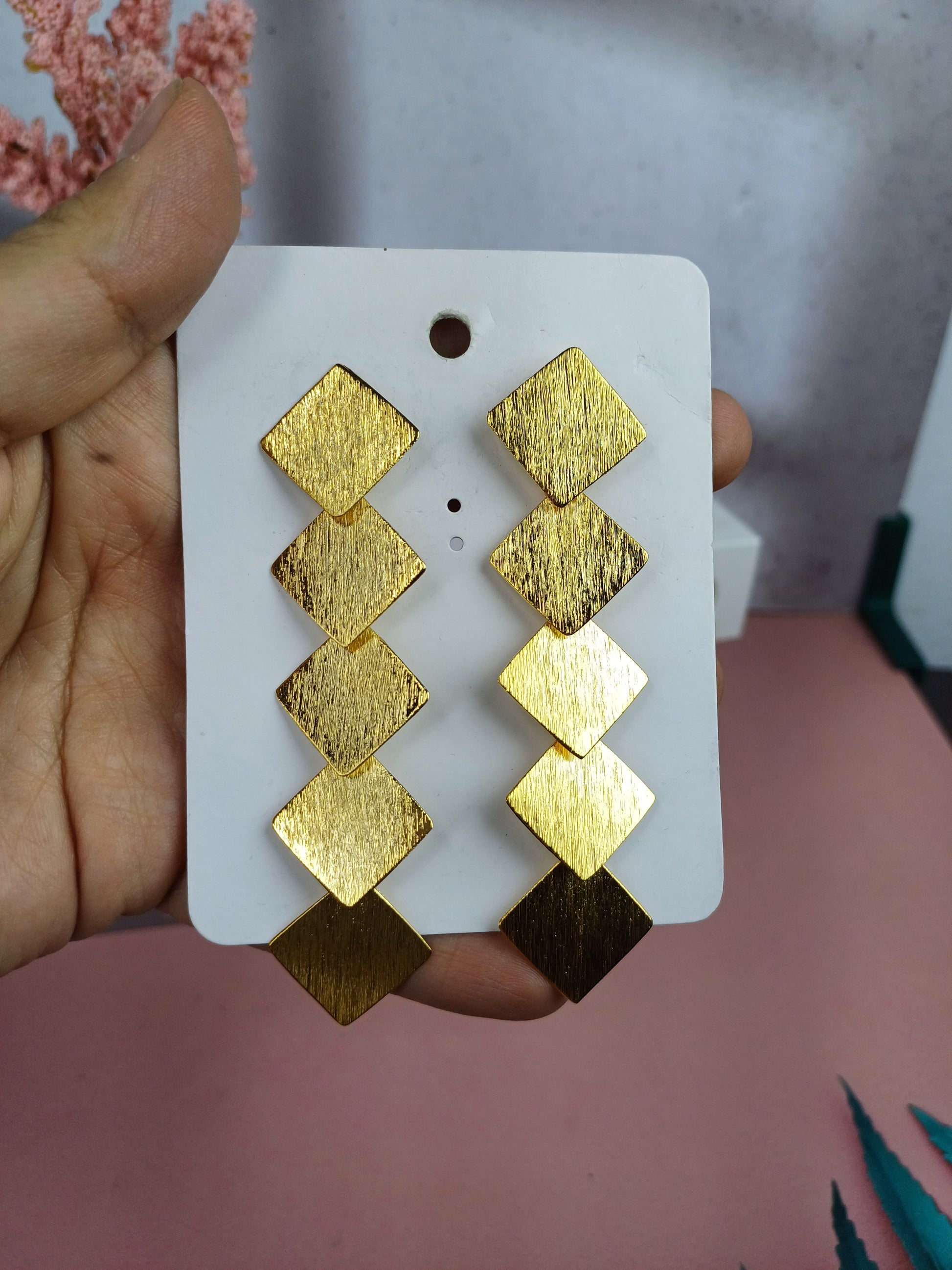 Arete Bronce Rombo con baño de oro de 24 kilates