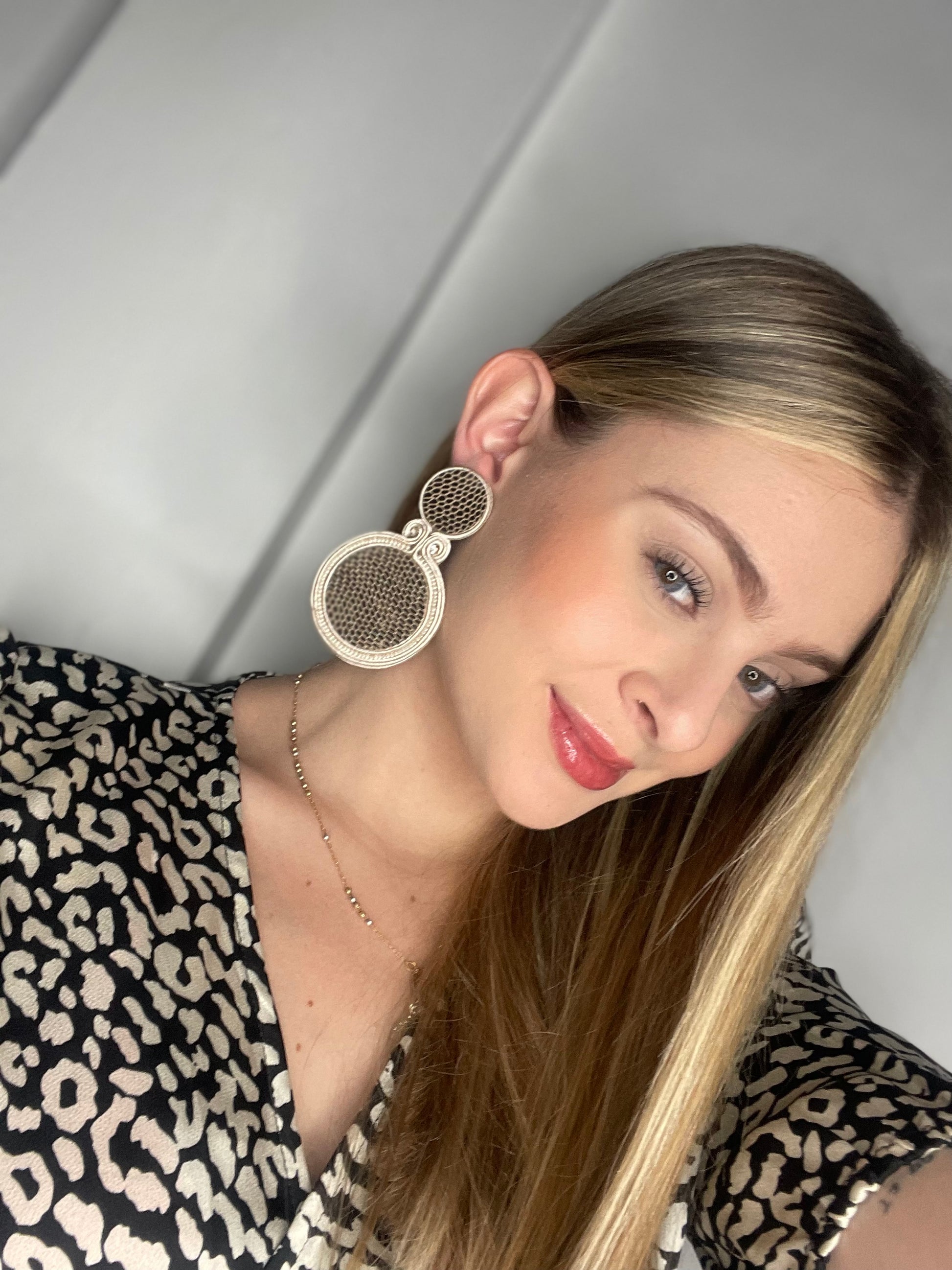 Maxi Arete Doble tejido en cordón Soutache y Cuero