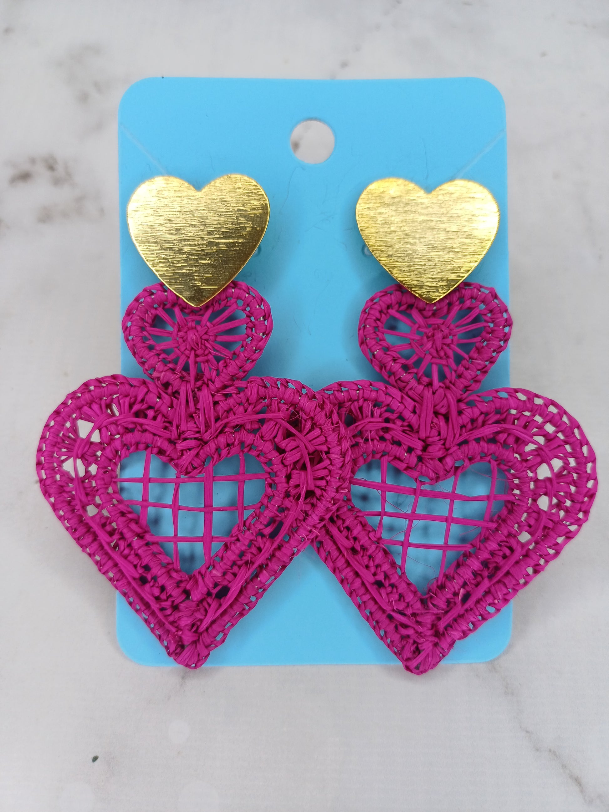 Maxi Arete tejida en palma de Iraca corazón con topo en bronce con baño de oro de 24 quilates
