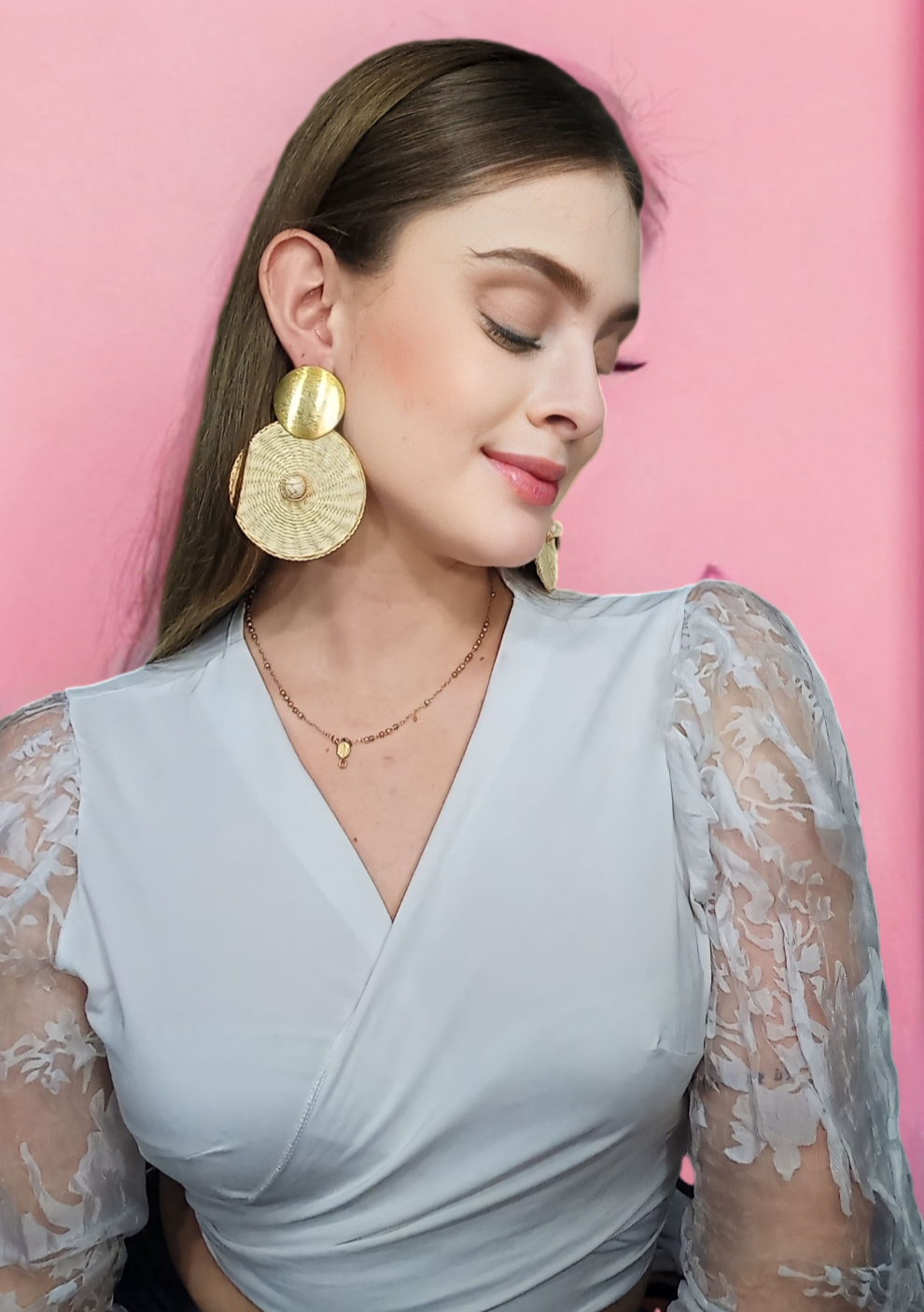 El Maxi Arete Palma de Iraca destaca por su diseño artesanal exclusivo que combina la elegancia de la piedra natural con la técnica detallada del alambrismo. Cada pieza está cuidadosamente elaborada con palma de iraca, un material natural y sostenible, realzado por un topo dorado fabricado en bronce y bañado en oro de 24 quilates, lo que garantiza durabilidad y un acabado de alta calidad. Este arete no solo aporta un estilo sofisticado y contemporáneo, sino que también refleja un compromiso con la artesanía tradicional colombiana, ideal para quienes valoran la autenticidad y la belleza natural en sus accesorios.