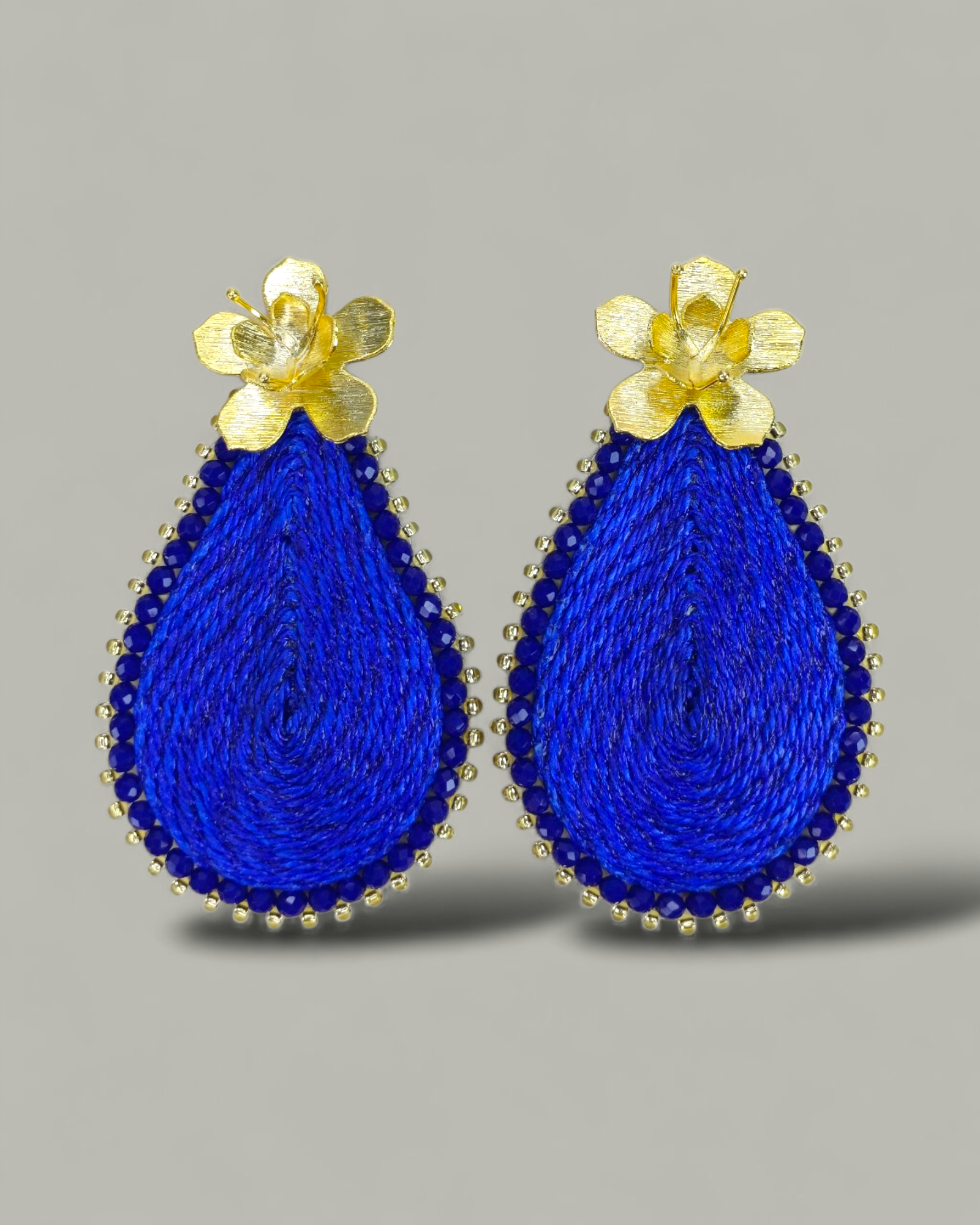 Maxi Arete Tejido en forma de gota, una pieza que combina técnicas artesanales tradicionales con materiales de primera calidad. Elaborado con cristal murano auténtico que captura la luz con elegancia, complementado por un delicado topo en flor cuyos pistilos en bronce reciben un refinado baño de oro de 24 kilates. El tejido meticuloso que conforma la estructura de gota proporciona movimiento y sofisticación a cada paso. Ideal para quien aprecia la joyería artesanal que fusiona diseño contemporáneo con maestría técnica. Una declaración de estilo que refleja tanto la calidad de los materiales como la dedicación en su confección.