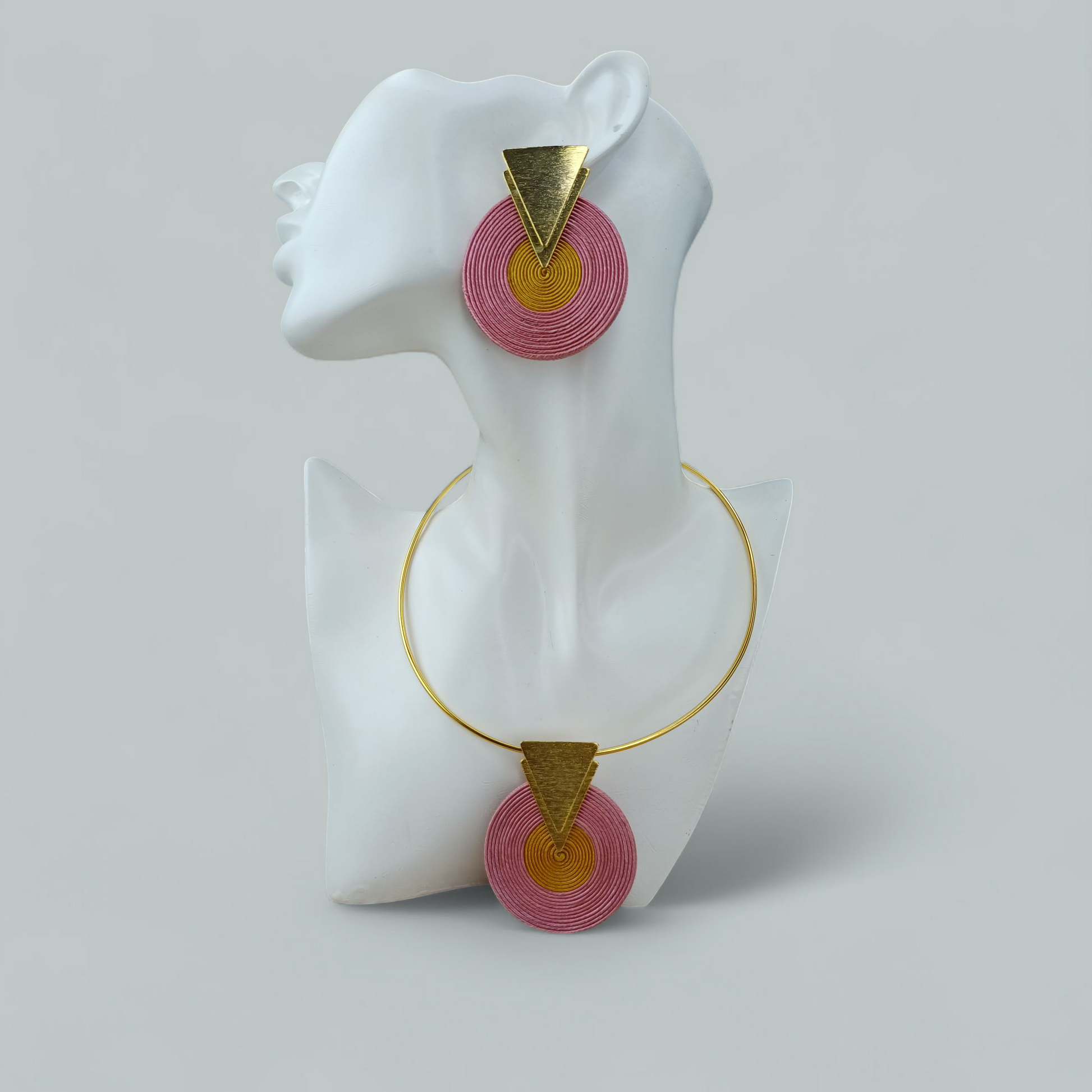 Este set de aretes y gargantilla está elaborado cuidadosamente con técnica de tejido en cordón soutache, que aporta un diseño sofisticado y detallado. Los herrajes en bronce cuentan con un baño de oro de 24 quilates, garantizando durabilidad y un acabado elegante que realza cualquier atuendo. Perfecto para quienes buscan una joyería artesanal con un toque exclusivo y resistente, este conjunto combina tradición y estilo contemporáneo para ocasiones especiales o uso diario.