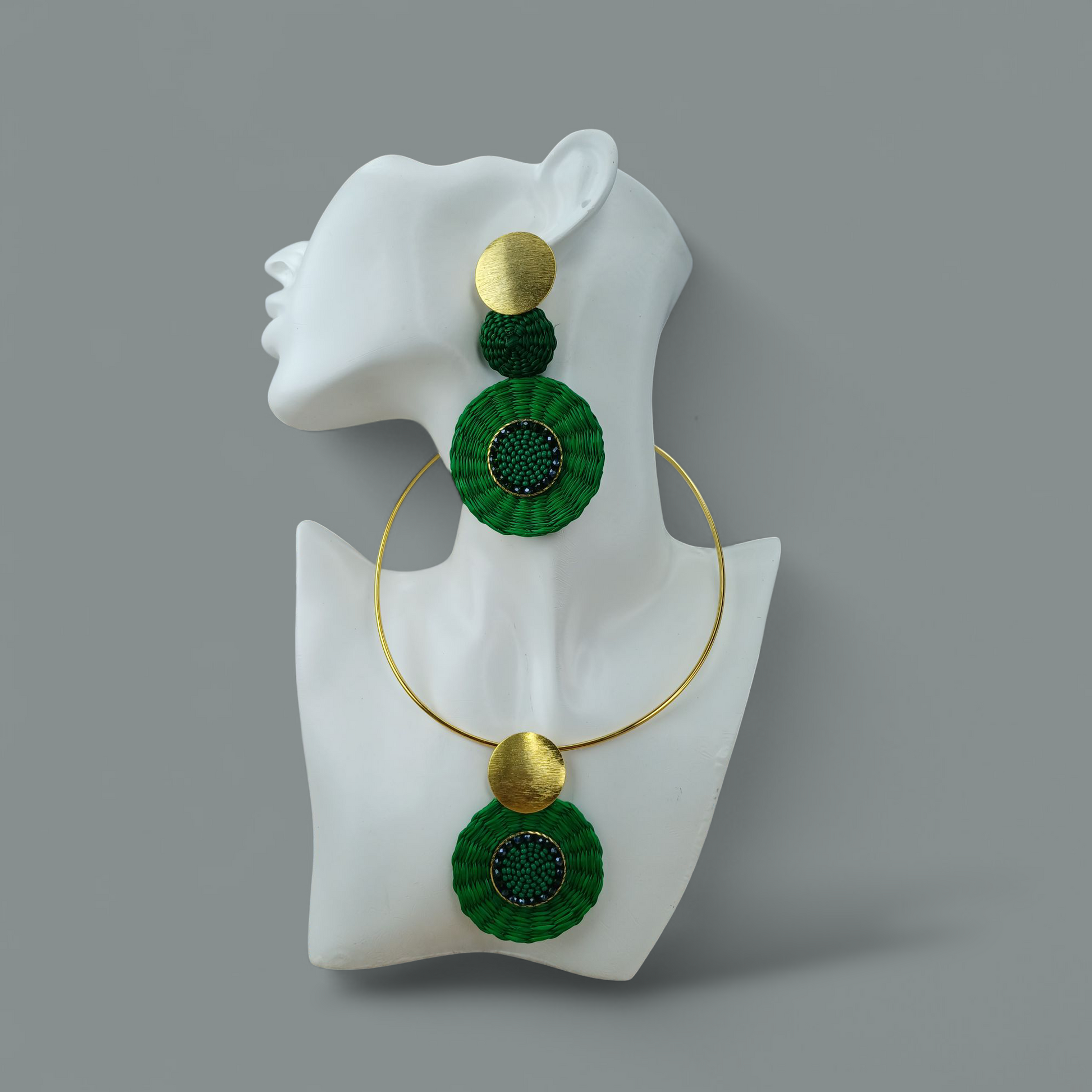 Este set exclusivo incluye aretes y una gargantilla elaborados artesanalmente con palma de iraca, un material natural reconocido por su durabilidad y belleza. Los herrajes están fabricados en bronce y cuentan con un baño de oro de 24 quilates, lo que garantiza un acabado elegante y resistente al desgaste. Perfecto para quienes buscan una joyería sofisticada que combina técnicas tradicionales con un diseño contemporáneo, este conjunto aporta un toque único y refinado a cualquier atuendo. Ideal para ocasiones especiales o para realzar el estilo diario con un accesorio distintivo y de alta calidad.